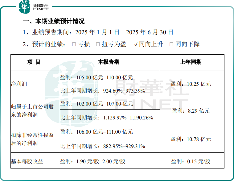 业绩预告显示,牧原股份2025年上半年实现归母净利润102亿元-107亿元,同比劲增1129.97%-1190.26%。